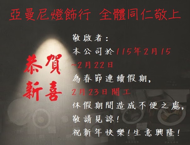 恭賀新喜,亞曼尼燈飾年假日期,開工時間為..
